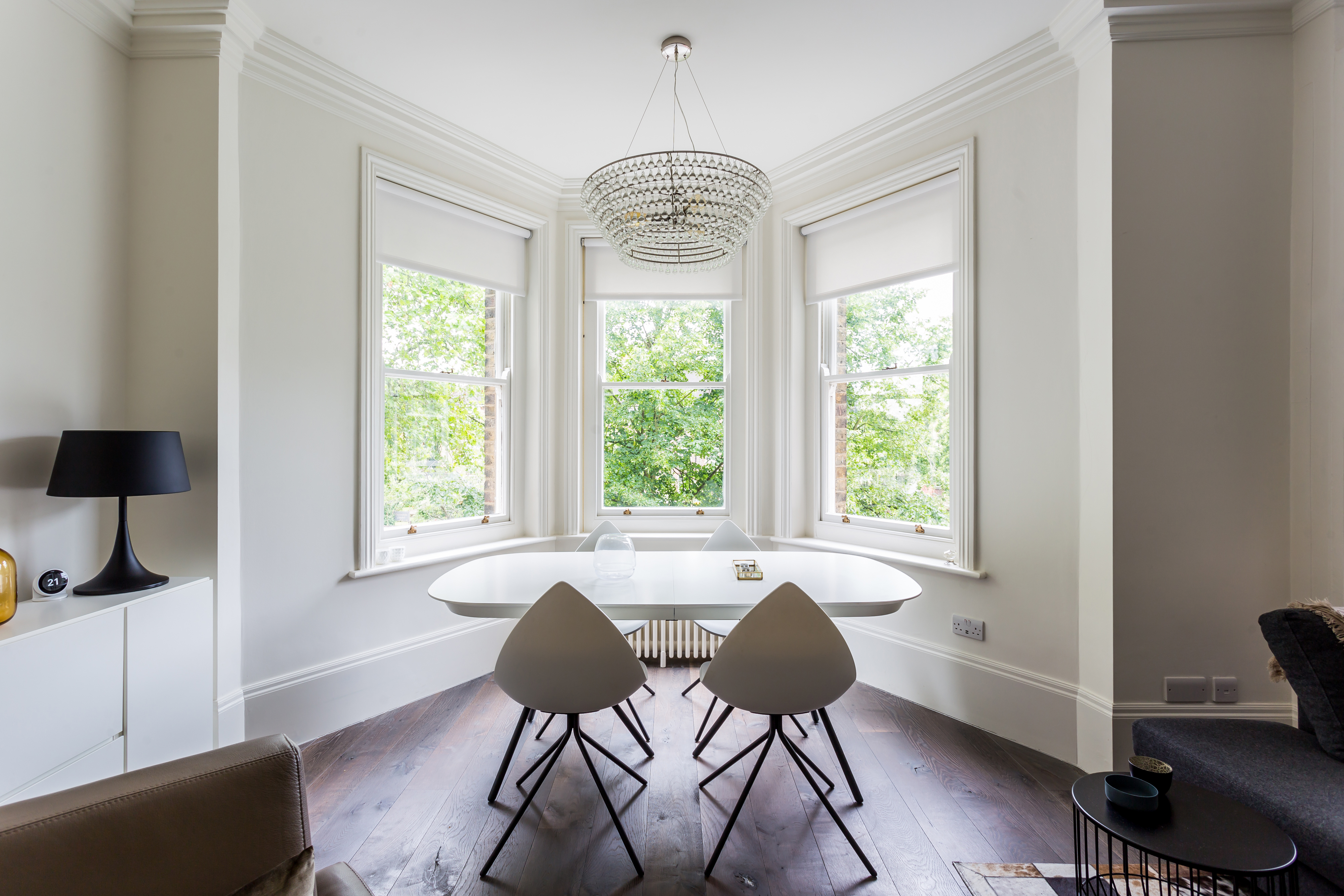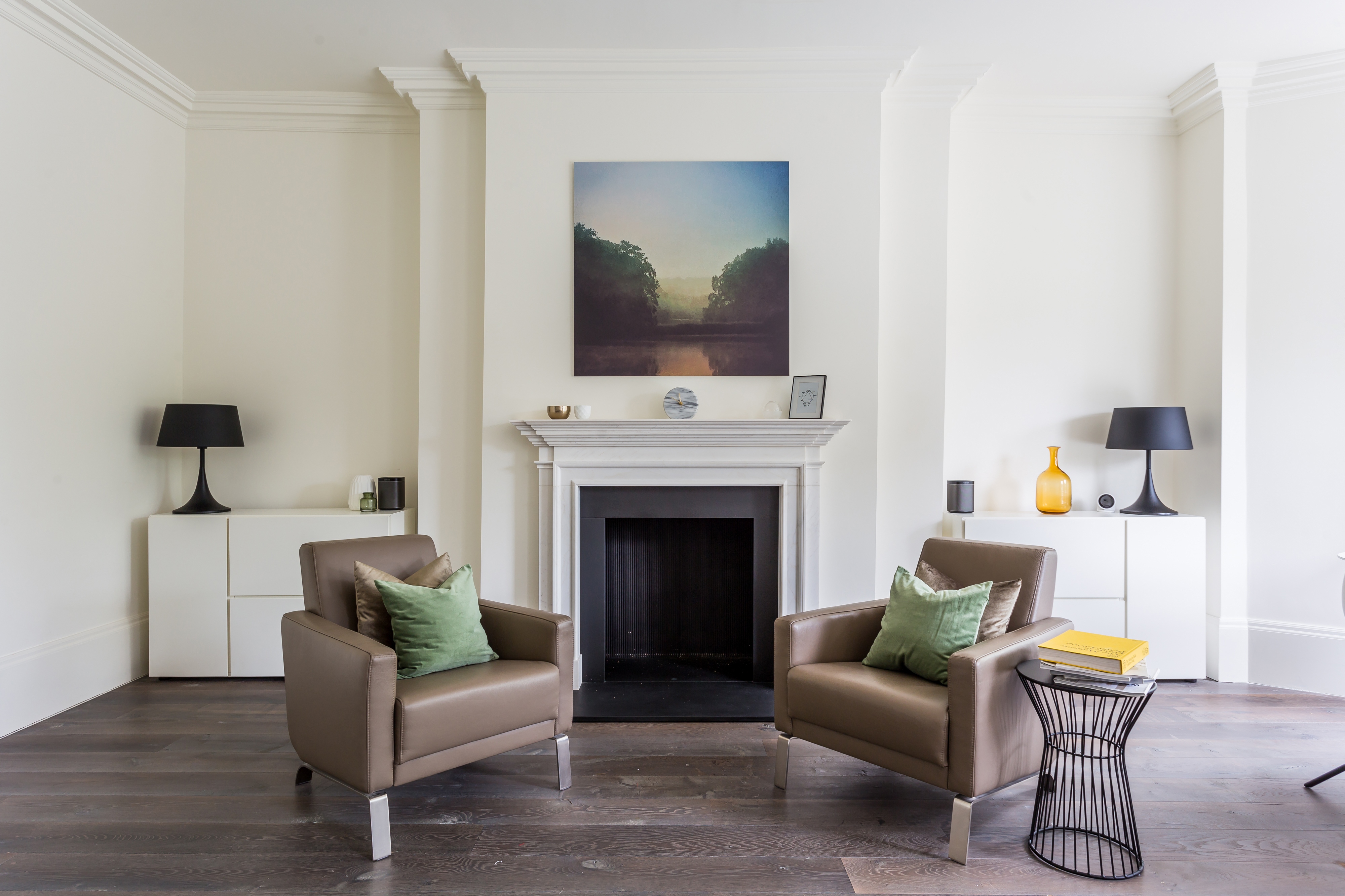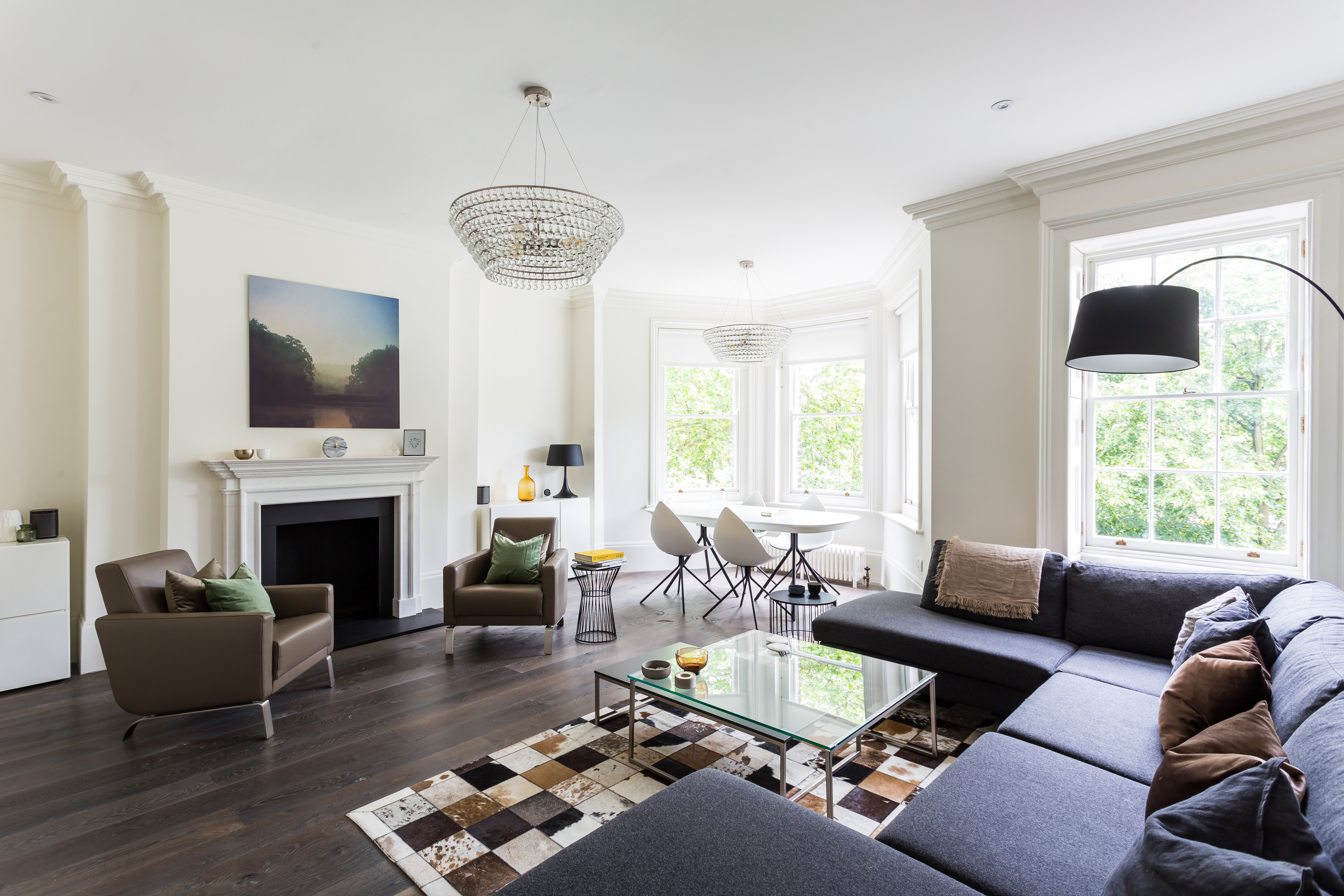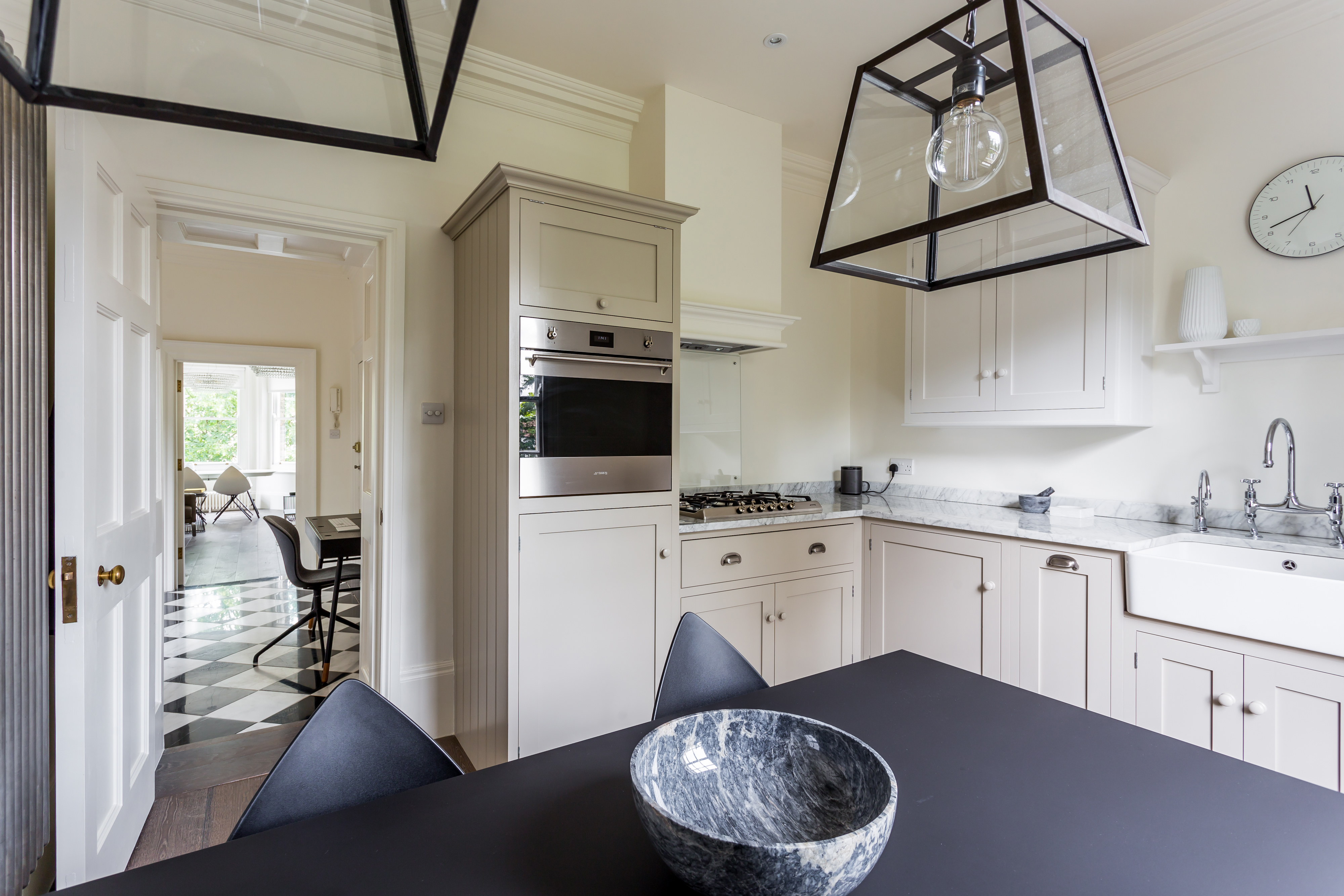 The majority of the architectural features remained close to the apartment's periodic nature . With a selective choice of modern fittings and fixtures the interior fused together a harmony of variable moods.
